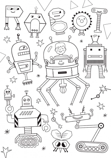Ena stran je klasična sestavljanka z motivom robotov, druga je pripravljena za barvanje – idealna kombinacija za ustvarjalno igro.