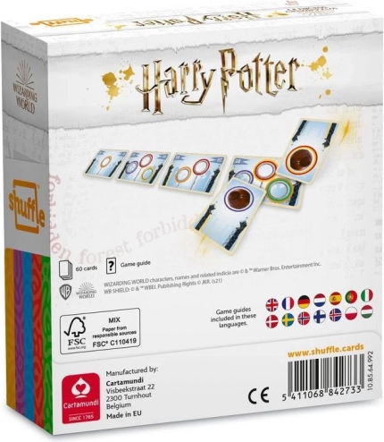 Ilustrirane karte z obroči, klopkom in simboli domov prinašajo čarobno vzdušje naravnost na mizo.