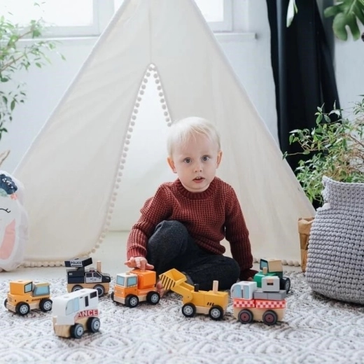 Igrača reševalno vozilo iz serije Lesene igrače krepi prijemalni refleks in uči natančnosti. Igrača spodbuja domišljijo ter razvija koordinacijo oči in rok. Ima premične dele. Vsi materiali, uporabljeni pri izdelavi igrače, so certificirani in pobarvani z nestrupenimi barvami. Igrača je primerna za otroke od 12 mesecev starosti.
