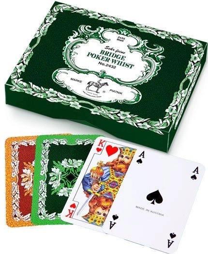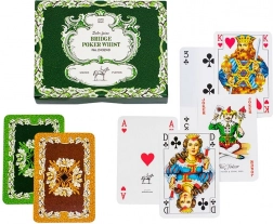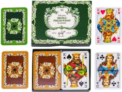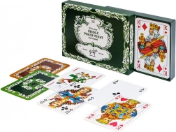 Ta dvojni paket je idealna izbira za domače igralne večere, klube ali kot stilsko darilo za navdušence nad kartami. Univerzalni francoski format 58 × 89 mm je popoln za bridž, poker, remi in številne druge klasične igre.
