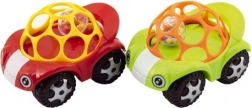 Plastični avtomobilček je zasnovan tako, da pritegne pozornost otrok s svojimi veselimi barvami in ropotajočimi zvoki, ki jih ustvarja kroglica znotraj. Zaradi mehke in luknjaste strehe ga lahko enostavno primejo tudi najmlajši otroci.