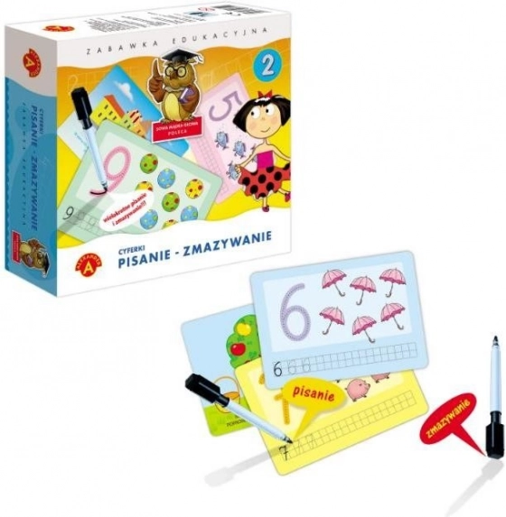 Zabavna izobraževalna igra za predšolske otroke, ki jim pomaga usvojiti pravilne oblike številk, njihovo prepoznavanje in osnove računanja. Zahvaljujoč večkrat uporabnim tablicam z brisalnim flomastrom otroci vadijo tudi fino motoriko, pozornost in soustvarjanje – vse v igrivi obliki.