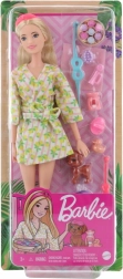 Punčka Barbie ve, da je najbolje poskrbeti zase! Ta set punčke in dodatkov slavi njen najljubši način, kako v zdravilišču napolni baterije! Barbie Wellness punčka v zdravilišču je oblečena v prikupen kopalni plašč z limonastim potiskom in je opremljena z vsem potrebnim za sproščujoč dan v spa centru, vključno z izdelki za kopel, krtačami, svečami in masko za oči – ima celo masko za oči za svojega kužka! Punčka ne more stati samostojno. Barve in videz izdelka se lahko razlikujejo. Starost 3+