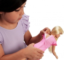 Vstopite v svet, kjer se začne prijateljstvo in domišljija nima meja. Punčka iz linije Moja prva BARBIE je večja, lahka in prijetno gibljiva, da jo majhne ročice zlahka držijo, oblačijo in postavljajo v poze. Rožnato obleko krasijo igrivi detajli, kot so volančki in grafika torbice v obliki srčka, ne manjkata ujemajoč se naglavni trak in čeveljčki. Dolgi blond lasje kar vabijo k česanju in ustvarjanju pričesk, kar naravno razvija fino motoriko.