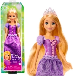 Lutka RAPUNZEL v ikonični vijolični obleki zasije na vsakem kraljevem plesu. Bleščeči zgornji del in snemljivo krilo z edinstvenim vzorcem poudarjata njen princeskin slog, medtem ko tiara in čeveljčki dopolnijo popoln videz. Zahvaljujoč sklepom zlahka zavzame različne poze in je pripravljena na vsako pustolovščino.