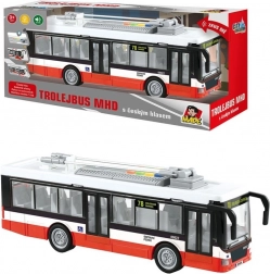 Ta podrobno izdelan trolejbus otrokom prinaša pristno izkušnjo mestnega prometa. Igrača predvaja postajna obvestila v češčini (Glavna postaja, Mestno gledališče, Živalski vrt) in je dopolnjena z atraktivnimi svetlobnimi efekti. Zahvaljujoč pogonu na vztrajnik je dovolj, da trolejbus rahlo potisnete in zapelje naprej.