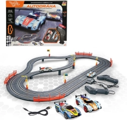 Ta kakovostna avtocesta prinaša zabavo za vso družino. Zahvaljujoč dolžini proge 300 cm in dinamični postavitvi z mostom boste uživali v napetih dvobojih v dvoje. Enostavno napajanje preko USB vam omogoča priklop na običajni USB napajalnik, powerbank ali računalnik (vir ni priložen).