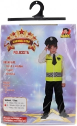 Set vključuje srajco s kravato, policijski telovnik in kapo, tako da zlahka ustvarite popoln videz. Preostale dodatke, kot so temne hlače ali obutev, lahko prilagodite svojim možnostim.