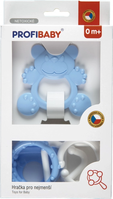 Ta komplet v pastelnih barvah je zasnovan tako, da dojenčkom nudi varno olajšanje pri izraščanju zob hkrati pa spodbuja njihove čute. Lahki materiali in gladke oblike so nežni do ust in dlesni, enostavni za držanje ter podpirajo razvoj fine motorike.