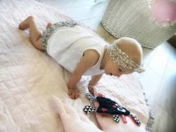- Lahka igrača je napolnjena s šumečo folijo, ki ob dotiku oddaja zvoke, podobne tistim v maminih trebuhu, kar na dojenčka deluje pomirjujoče.