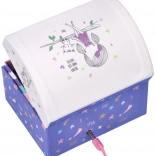 V notranjosti je prostor z merami 12 x 6 x 6 cm, kamor lahko shranite različne dragocenosti ali igrače. Skupne mere skrinjice so 12,5 x 10 x 10 cm.