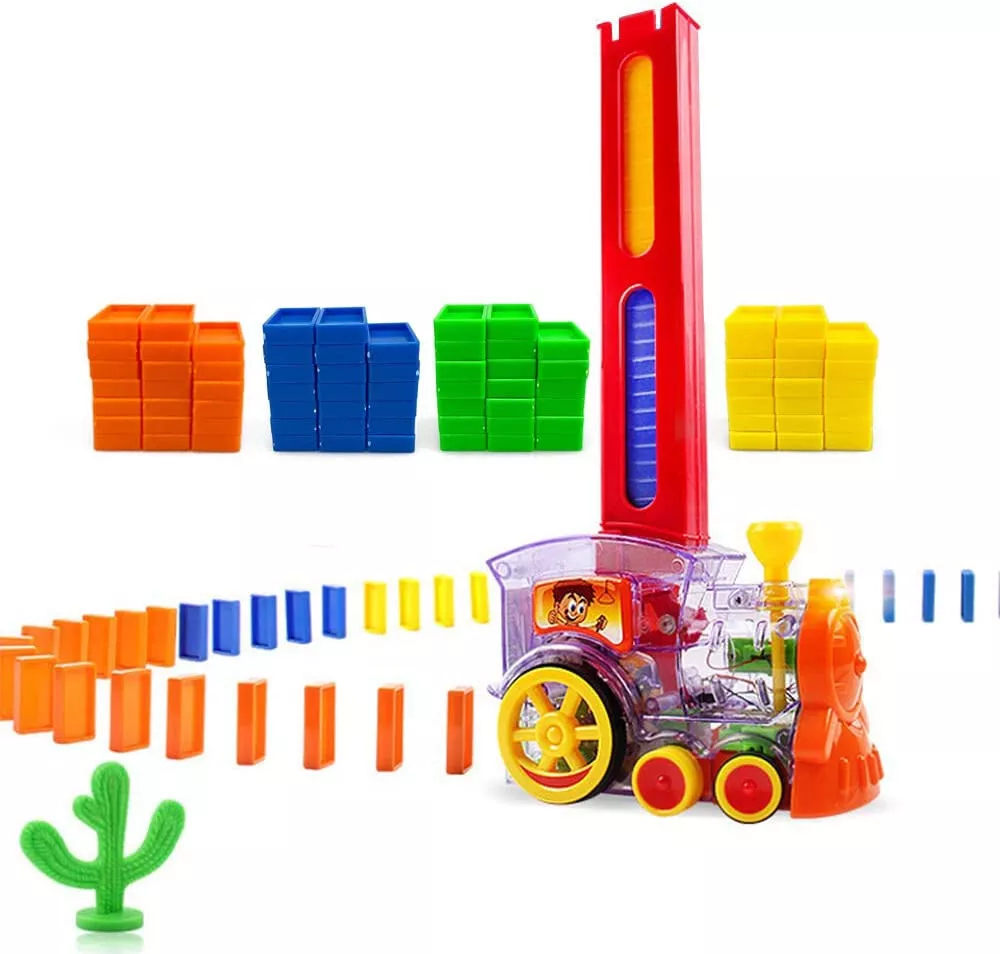Barvita interaktivna lokomotiva, ki samodejno polaga domine v enakomernih razmikih in vse spremlja z zvokom zvončka. Igrača ponuja svetlobne in zvočne učinke, spodbuja kreativnost, fino motoriko in koordinacijo oko–roka. Odličen predlog za darilo za otroke in zagotovilo dolgotrajne zabave.