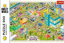 Sestavljanka Trefl Kje je Smiley? ponuja izziv sestavljanja v barviti mestni panorami.
