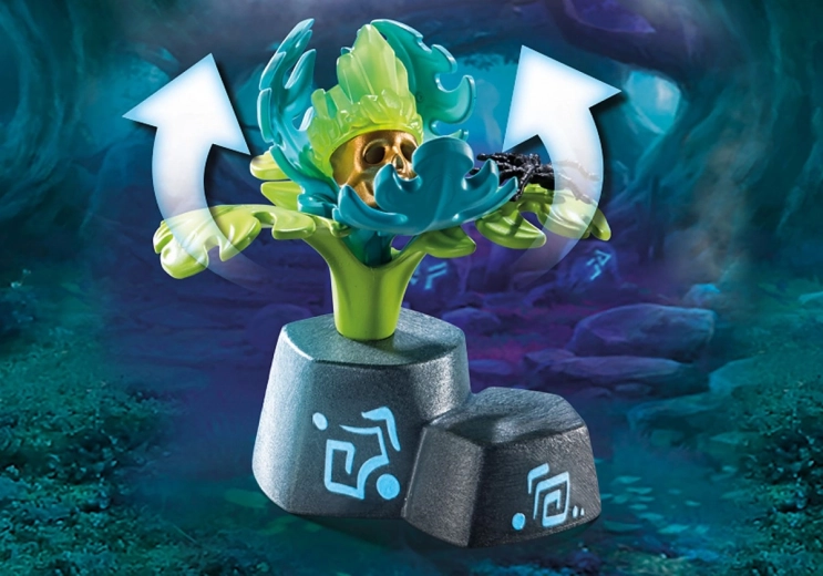 Komplet vsebuje rastlinskega čarovnika Vegithorja, pajka, džungelsko rastlino z gibljivimi listi, čarobno palico, dva kristala, lobanjo in številne druge čarobne dodatke.