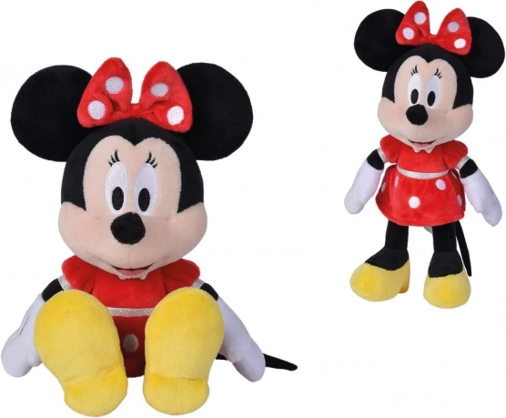 Ljubka plišasta figurica Minnie Mouse višine 25 cm bo razveselila male in velike oboževalce DISNEY. Mehka tkanina, klasična rdeča obleka z belimi pikami, rumeni čeveljčki in izvezeni detajli jo naredijo idealno igračo za crkljanje in dekoracijo otroške sobe.