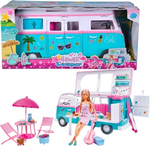 Lutka Steffi s karavanom Steffi Love je idealno darilo za vse male ljubitelje potovalnih iger in avantur. Ta čudovit karavan je popolnoma opremljen z zložljivo kuhinjo, dnevno sobo, posteljo in mizo za realistične igralne izkušnje. Vključena je tudi različna dodatna oprema, ki otrokom omogoča razvijati svojo ustvarjalnost in uživati nepozabne trenutke zabave.