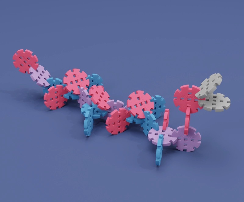 Konstrukcijska kolesca Mini so inovativen gradbeni set, ki povezuje zabavo z učenjem. Posebna oblika kolesc z izboklinami omogoča ustvarjanje gibljivih mehanizmov, prenosov in izvirnih 3D zgradb. Otroci naravno urijo fino motoriko, logično razmišljanje in prostorsko predstavljivost – vse to varno, zahvaljujoč mehkem in prožnem materialu.