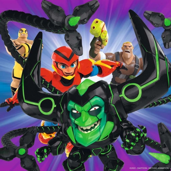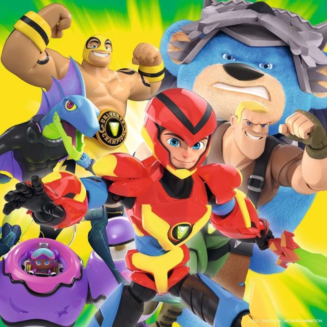 Ta komplet vsebuje tri samostojne slike po 49 koščkov (skupaj 147 kosov) z dinamičnimi prizori iz sveta Power Players. Otroci bodo uživali ure zabave pri sestavljanju, obenem pa na nežen način urili zbranost in prostorsko predstavo. Zahvaljujoč natančno izrezanim koščkom se sestavljanka sestavlja zlahka in z veseljem.