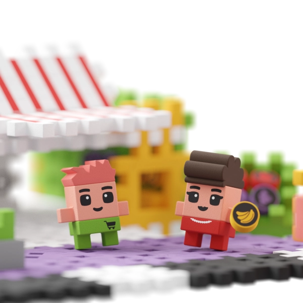 Komplet trgovine vsebuje kar 148 kock in dve originalni figuri, od katerih se ena kar spoti, ko prebivalce zalaga s svežimi živili. Sestavite komplet po navodilih in ga združite z drugimi kompleti iz serije Waffle City, ki bodo skupaj oživili mesto. Seveda ne brez pomoči vaše domišljije! In ko z vašim malčkom dobite novo idejo, lahko iz elementov kompleta zgradite povsem novo in osupljivo stvaritev.