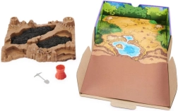 - Poseben pladenj s terenom, črn in rdeč kinetični pesek, mini orodja, 10 kosti za sestavo 3 okostij