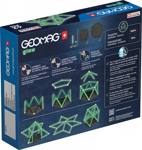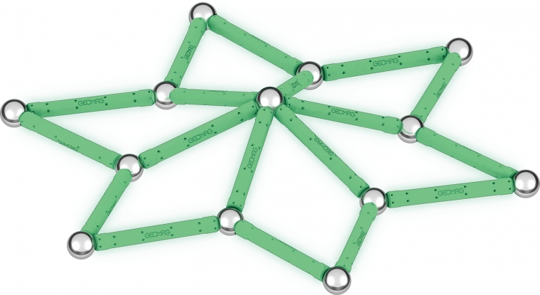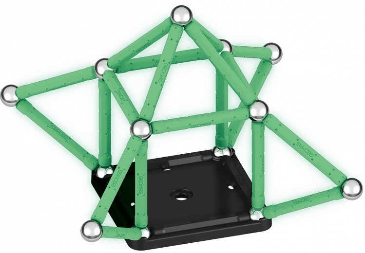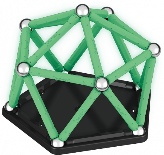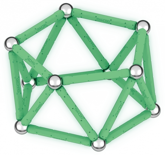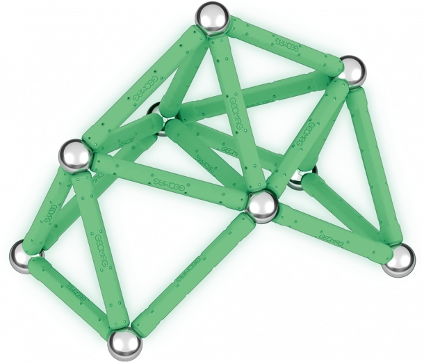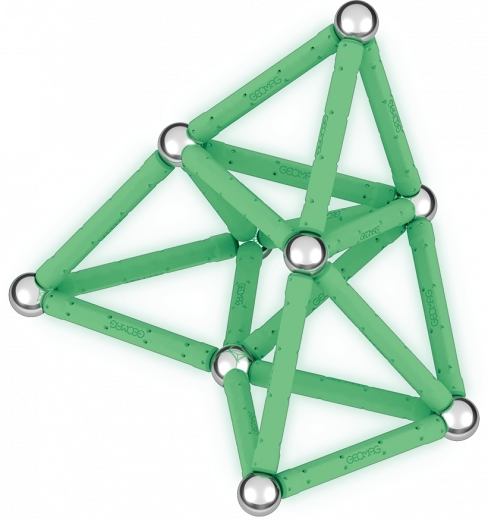 GEOMAG Glow je izviren magnetni konstruktor, ki omogoča ustvarjanje neomejenega števila konstrukcij s pomočjo magnetnih paličic in jeklenih kroglic. Zahvaljujoč fosforescentnim delom bodo tvoji modeli po osvetlitvi v temi lepo žareli – idealno za zabavne eksperimente in privlačno učenje.