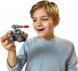 Preprosto sestavljiv tovornjak z masivnimi pnevmatikami, podrobno karoserijo in delujočim izstreljevalnikom za bitke in kaskaderske podvige.