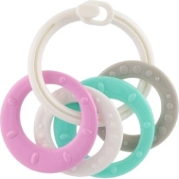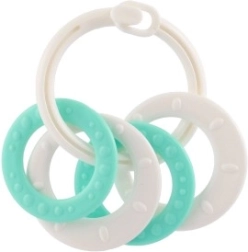 Primerno za otroke od 3 mesecev naprej, ta komplet za grizenje vsebuje pisane plastične obročke, ki so ne samo lahki, temveč tudi pomagajo pri razvoju fine motorike. Zaradi različnih struktur in oblik ta igrača nudi več čutnih dražljajev, ki so namenjeni obdobju izrasta zob pri otroku.