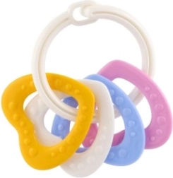 Teksture na površini obročkov zagotavljajo dodatno stimulacijo za dlesni otrok med izrastkom zob.