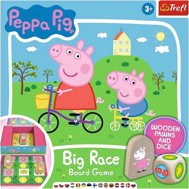 Big Race (Velika dirka) je vesela in preprosta namizna igra z licenco Pujsa Pepa, v kateri otroci doživijo svoje prve zmage in poraze. Vrzite veliko leseno kocko, premikajte svoje lesene figurice po barvnem načrtu in odkrivajte kartice s posebnimi akcijami – dodatni met, menjava figurice, korak naprej ali nazaj. Cilj je jasen: biti prvi, ki zapusti igralni načrt, in zmagati veliko dirko!