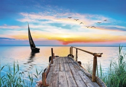 Prizor s pomolom, jadrnico in sončnim zahodom spodbuja sprostitev in prinaša v dom vzdušje tišine in ugodja.