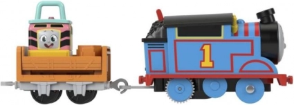 Ta barvit 18-delni komplet na baterije prinaša otrokom akcijsko nakladanje in razkladanje z žerjavko, vožnjo po krožni progi in zabavno spuščanje vozilca Sandy po toboganu. Motorizirani Tomaž vleče tovorni vagon, medtem ko vrtljiva roka žerjavke Carly s kavljem zlahka zagrabi in prestavi tovor.