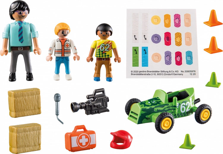 S Playmobil Reševalno Akcijo boste doživeli dramatične trenutke med karting dirko. Voznik nenadoma izgubi nadzor nad vozilom, vendar je zdravnik Mikey takoj na mestu, da nudi potrebno pomoč. Vse se dobro konča, kar zagotavlja ure igre z zgodbo.