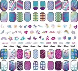 Barvni laki, umetni nohti in tematske nalepke za kreativen miks motivov od zvezdic do črt in prelivov.