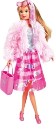 Najnovejši stil Steffi Flamingo pritegne pozornost ne le ljubiteljev najnovejših modnih trendov. Steffi navduši s svojim avantgardnim slogom, za katerega je značilna nenavadna kombinacija krznenega jakna in obleke. Zgornji del je srebrn, spodnji del pa je dvoslojen – čez krilo je plasten polprosojen prekrivni sloj s potiskom srebrnih flamingov. K zabavi prispevajo dodatki, kot so pripete lasne podaljške, sončna očala in modna torbica.