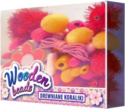 Ustvarjalni komplet lesenih perl v rožnatih tonih: pomponi, obeski in voskana vrvica 1 m. Odličen za otroke od 4. leta za izdelavo izvirnega nakita.