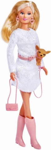 - Punčka Steffi, kužek čivava, torbica, škornji, pas, uhančki