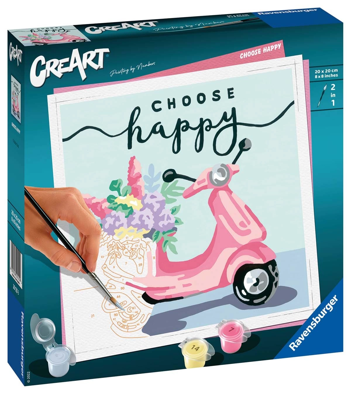 Ustvarjalni set CreArt »Choose Happy« otrokom od 12 let dalje prinaša možnost raziskovanja različnih likovnih tehnik, eksperimentiranja z barvami in razvoja fine motorike. Zaradi praktičnih dimenzij 22,2 × 22,2 × 4,8 cm je idealen za dom in na poti.