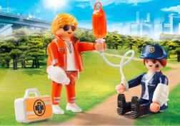 Odkrijte svet poln fantazije in iger s Playmobil Duo Packom. Ta edinstvena konstrukcijska igra ponuja dve figuri: urgentna zdravnica, ki je vedno pripravljena pomagati, in policistko, ki potrebuje zdravniško pomoč. Vsaka figurica je podrobno oblikovana in prihaja s pripomočki, ki obogatijo vsako igralno okolje.