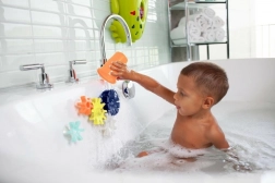 Ko vlijete vodo, se zobniki zavrtijo in ustvarijo zabaven mehanizem na vodni pogon, ki otroke navduši pri vsaki kopeli.