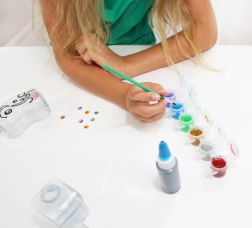 Del pakiranja so 3 vaze, pripravljene za okraševanje, čopič, okrasni kamenčki in modelirna masa za obrisovanje oblik. Otroci bodo uživali v ustvarjalnem procesu in čudovitem rezultatu, ki bo okrasil sobo ali razveselil kot darilo.