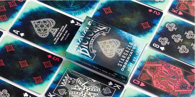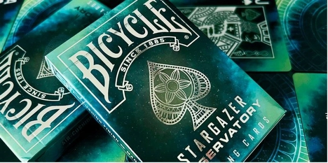 Igralne karte Bicycle Stargazer Observatory so najnovejši dodatek k zbirki Bicycle Stargazer s vesoljsko tematiko. Oblikovanje kart je navdihnjeno z ozvezdji in sveto geometrijo. Gre za zelo izrazit komplet kart z astralno tematiko.
