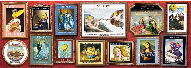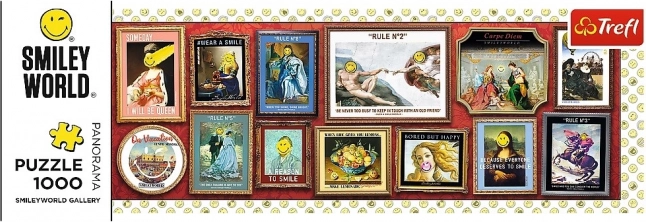 Panoramske puzzle z veselim motivom SMILEY Galerija ponujajo ure mirne zabave za odrasle in starejše otroke. Panoramski format po sestavljanju lepo zažari v interierju, zahvaljujoč kakovostnemu tisku pa izstopajo vsi detajli.