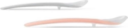 V pakiranju sta dve žlički v praktičnih barvah – sivi in nežno koralni. So lahke v roki, enostavne za čiščenje in jih lahko varno odložite v pomivalni stroj na zgornjo košaro. Za daljšo življenjsko dobo in varnost jih ne uporabljajte v mikrovalovni pečici.
