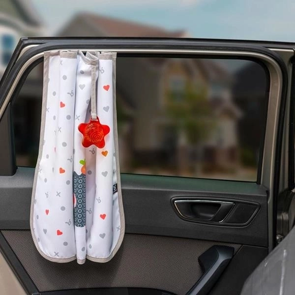 Namestitev je zelo preprosta zahvaljujoč štirim močnim magnetom, ki hitro in varno pritrdijo zaveso na okvir vrat brez uporabe priseskov ali kljuk. Ko zavese ne potrebujete več, jo lahko preprosto zložite in povežete z všitimi trakovi za enostavno shranjevanje. Posebna zvezda z bleščečim učinkom dodatno poskrbi za zabavo najmlajših potnikov, zato vožnja hitreje mine.