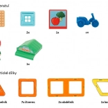 S sestavljanko Magformers Mestece Tržnica lahko po lastni domišljiji gradite različne arhitekturne zgradbe. Vsebuje 14 magnetnih oblik in 8 funkcionalnih dodatkov, vključno z majhno prodajalko, ki omogočajo ustvarjanje polodprtih prerezov, kjer so z ene strani vidne zunanje konture zgradbe, z druge pa notranja ureditev.