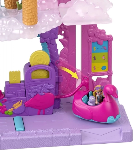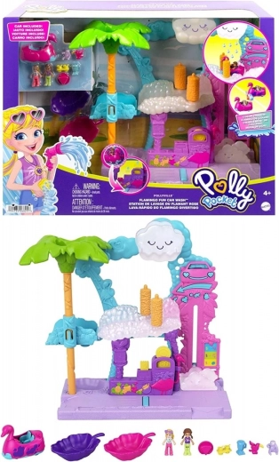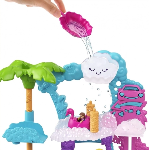 Doživite vodno zabavo in kup presenečenj z igralnim setom POLLY POCKET Plamenceva avtopralnica. Vključuje avto z učinkom menjave barve, oblačno dvigalo, vrteče se krtače, cvetlični tobogan, 2 punčki, 2 živalci in dodatke. Odlično darilo za otroke od 4 let, ki imajo radi kreativno in interaktivno igro.