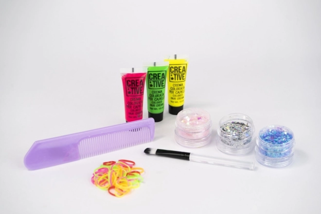 Komplet za barvanje in okraševanje las Creative je odlična izbira za otroke, ki radi eksperimentirajo s pričeskami. Začasni barvni geli in bleščice omogočajo ustvarjanje izrazitih ali nežnih učinkov brez trajnih sprememb. Zaradi lahkega nanašanja in praktičnih dodatkov je zabava zagotovljena doma in na zabavah.