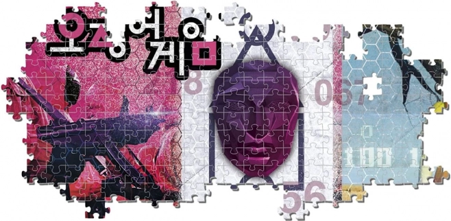 Panoramske sestavljanke CLEMENTONI Netflix Squid Game s 1000 kosi. Kakovosten tisk, trpežen karton in dimenzije po sestavi 98 × 33 cm. Odlično darilo za oboževalce.