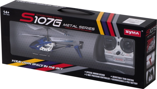 SYMA S107G sodi med najpriljubljenejše mikro helikopterje za začetnike in navdušence. Kovinska konstrukcija v kombinaciji z vzdržljivim ABS dobro prenaša padce, medtem ko izboljšani žiroskop ohranja helikopter stabilen brez neželenega vrtenja. Zaradi kompaktnih mer je model kot ustvarjen za letenje v notranjih prostorih.
