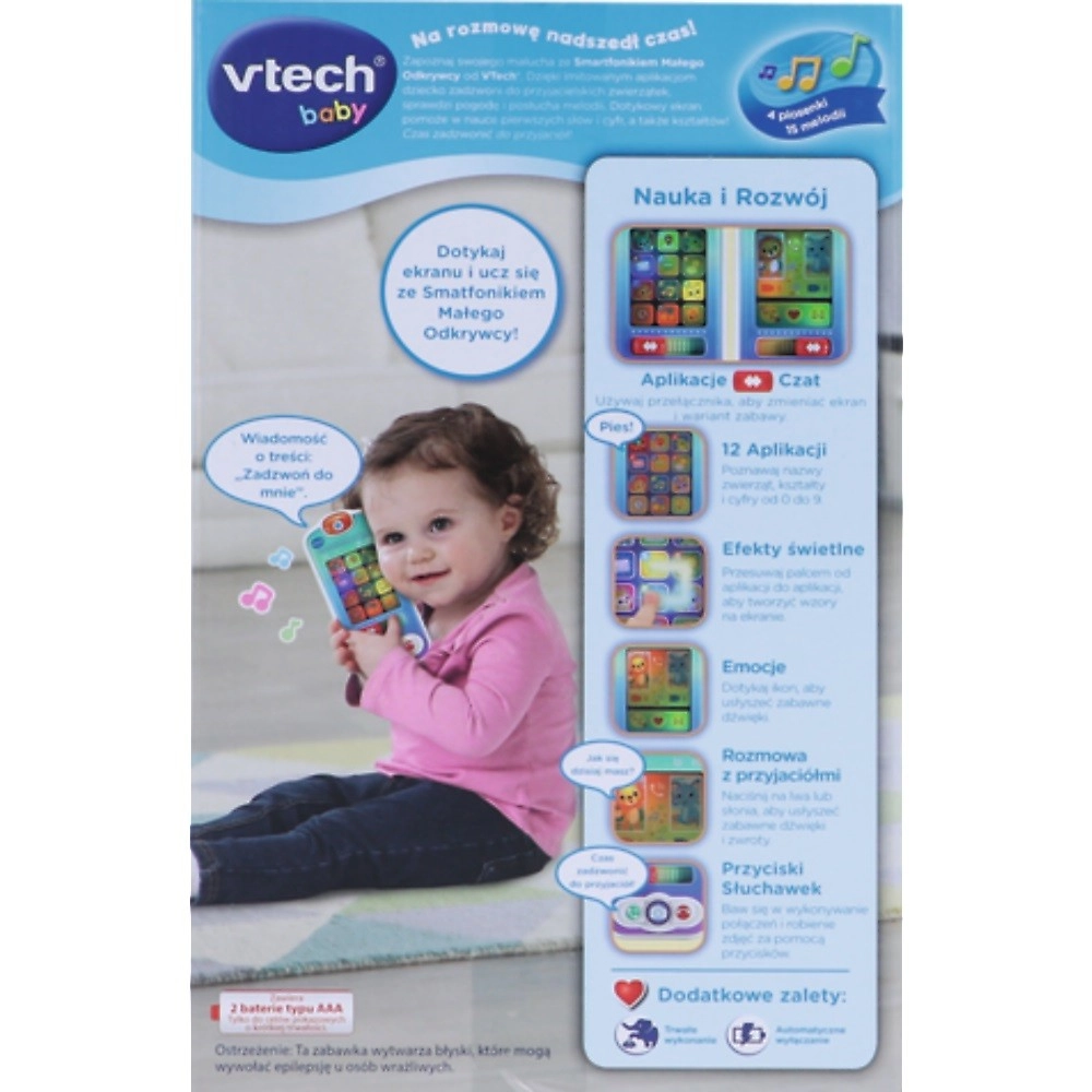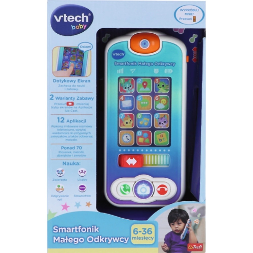Interaktivni otroški pametni telefon Malega raziskovalca spodbuja naravno radovednost otrok. Posnemane aplikacije omogočajo »klicanje« prijaznim živalim, preverjanje »vremenske napovedi« in predvajanje veselih melodij. Zaslon na dotik olajša učenje prvih besed, števil in oblik na zabaven način.